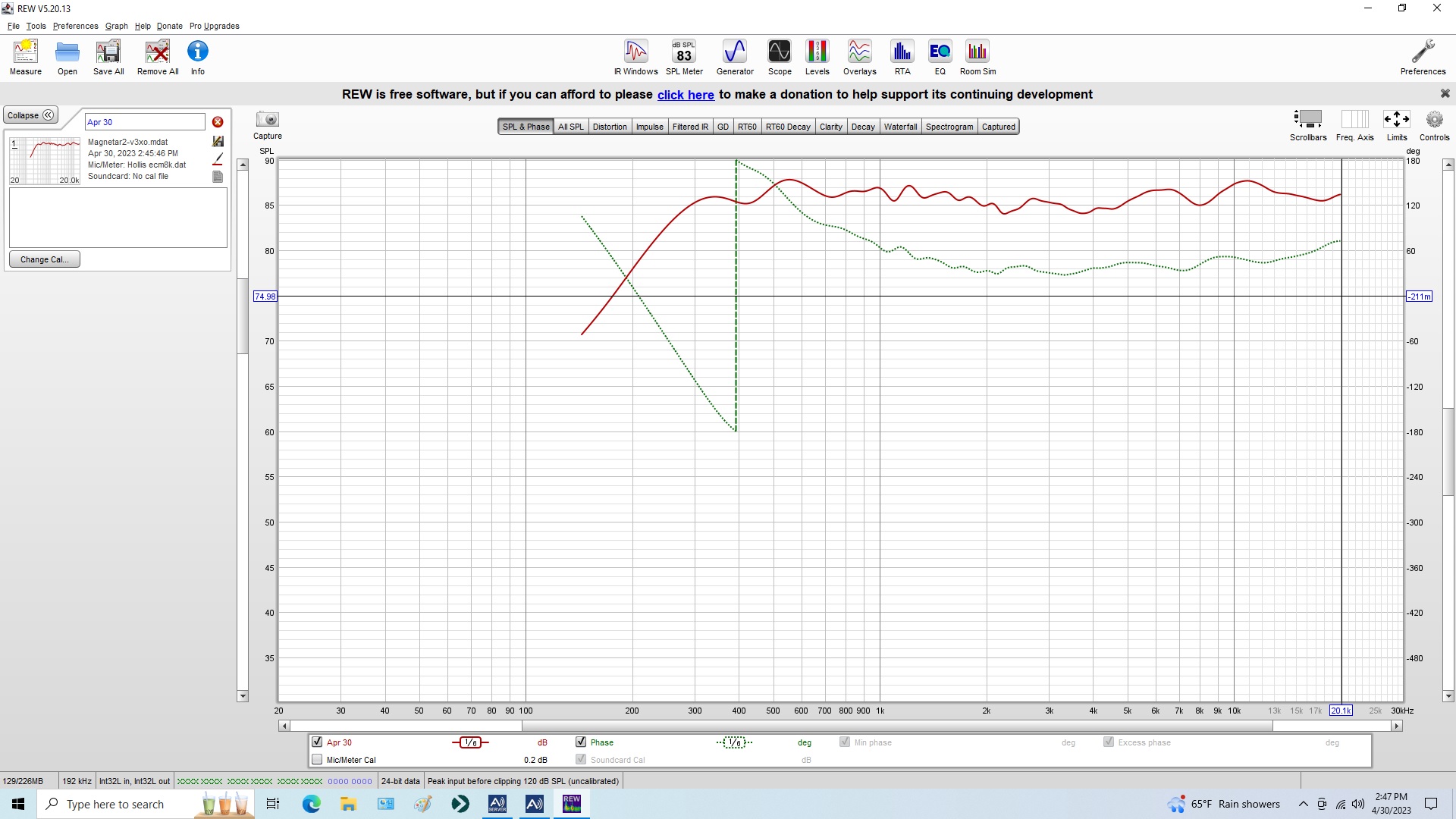 Have the prototype dspNexus 2x8 working with the Magnetar2 speakers for measurements. The new software engages the XLR balanced mic and ADC for measurements. This looks to be the software version to be released with the Early Adopter program dspNexus 2x8 system.