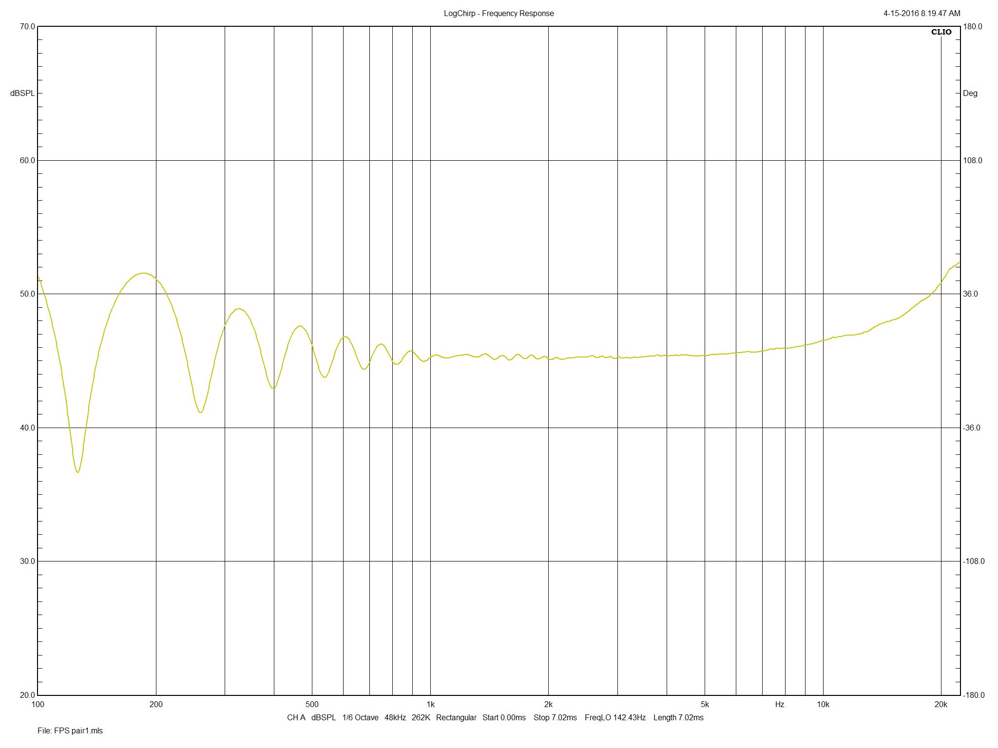 First CLIO Pocket measurement of the FPS array without the servo subs. With some simple shelving filters should be able to flatten out the HF response of the array.