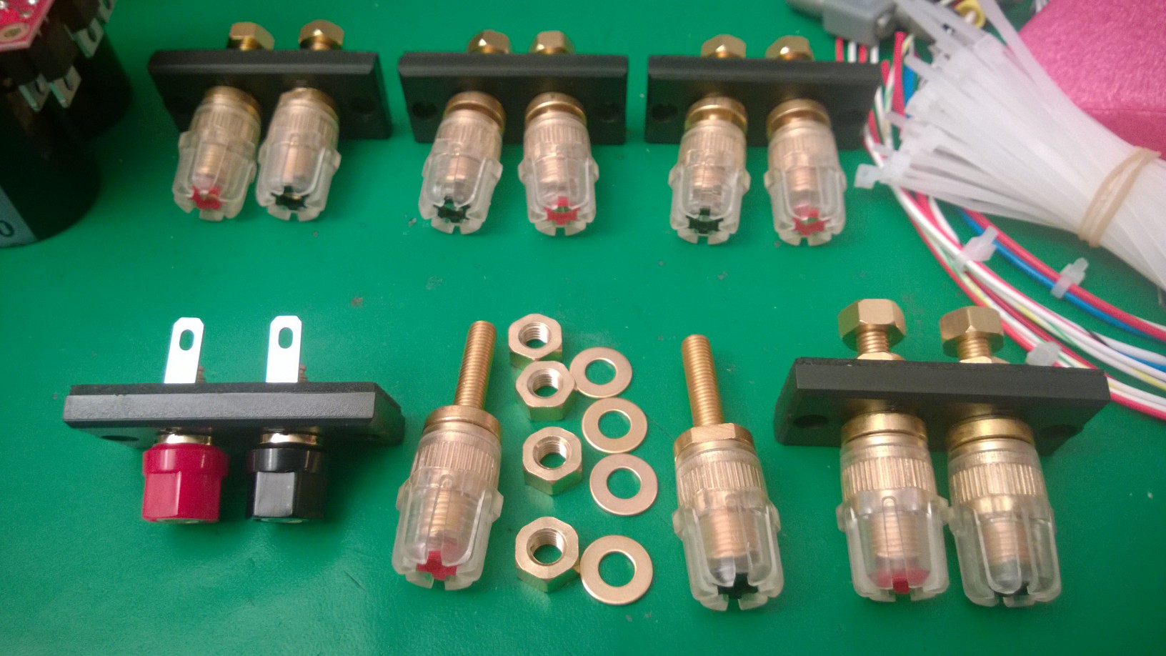 The 38 pairs of binding posts for the amp modules are complete. PE was having a closeout on binding posts, so got the number needed.