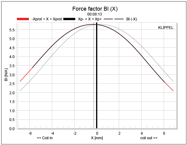 That is only true if the motor strength at large excursions is symmetrical. I have seen many drivers that for several reasons have a BL curve that is not symmetrical around center. At some point no matter how much power the servo forces into the voice coil there is not enough motor strength to control the nonlinearities. That point will vary in the in and out directions if the BL is not symmetrical. What is worse, the non symmetry of the suspension compliance (Kms) often is worse in the same direction that the BL is weakest making the job of the servo even that much harder. I'm including two graphs of a good driver that illustrates the case where the BL decreases faster in the same direction that the suspension stiffens faster.