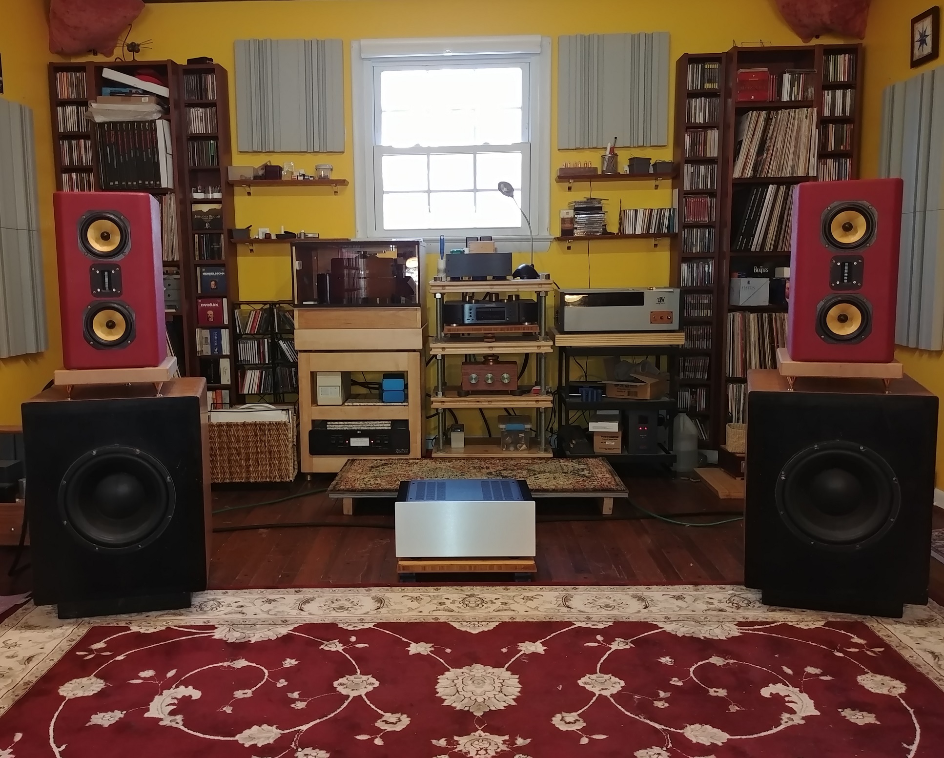 I am still letting the amp settle in before pushing the bias hotter, but figure I should be getting around 30W Class A into 8 ohms, 60W Class A into 4 ohms. Hooked it up to speakers and a source this morning before work, and it plays music just fine! Planing to put it into the system in the next few days on the bass cabinets, but would like to listen to it full range with a pair of Aria 5R speakers to see how they sound together. These are 4 ohm speakers that really never worked well with SET amps.