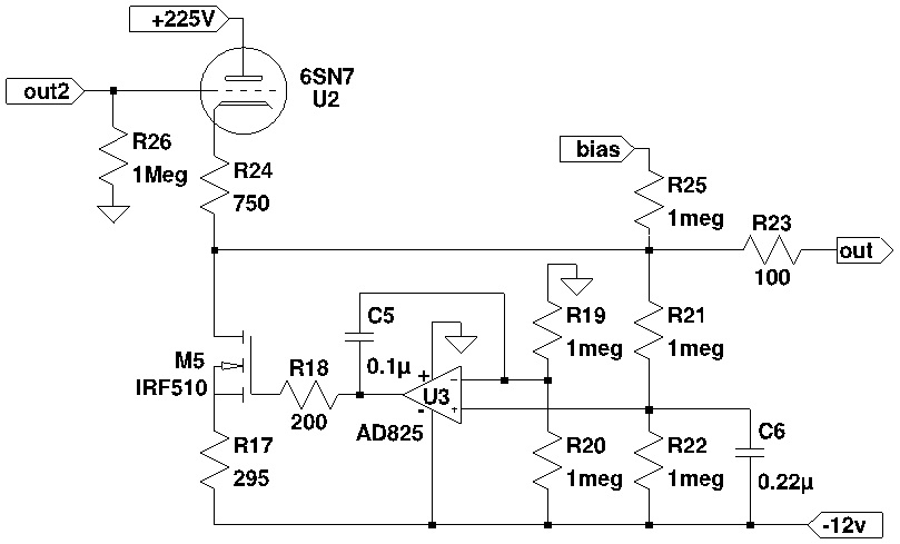 http://www.tubecad.com/2007/04/blog0102.htm.) The compliant CCS looks like an AC CCS to the triode, and sets the cathode-follower DC output to zero volts. The circuit is shown in Figure 6.