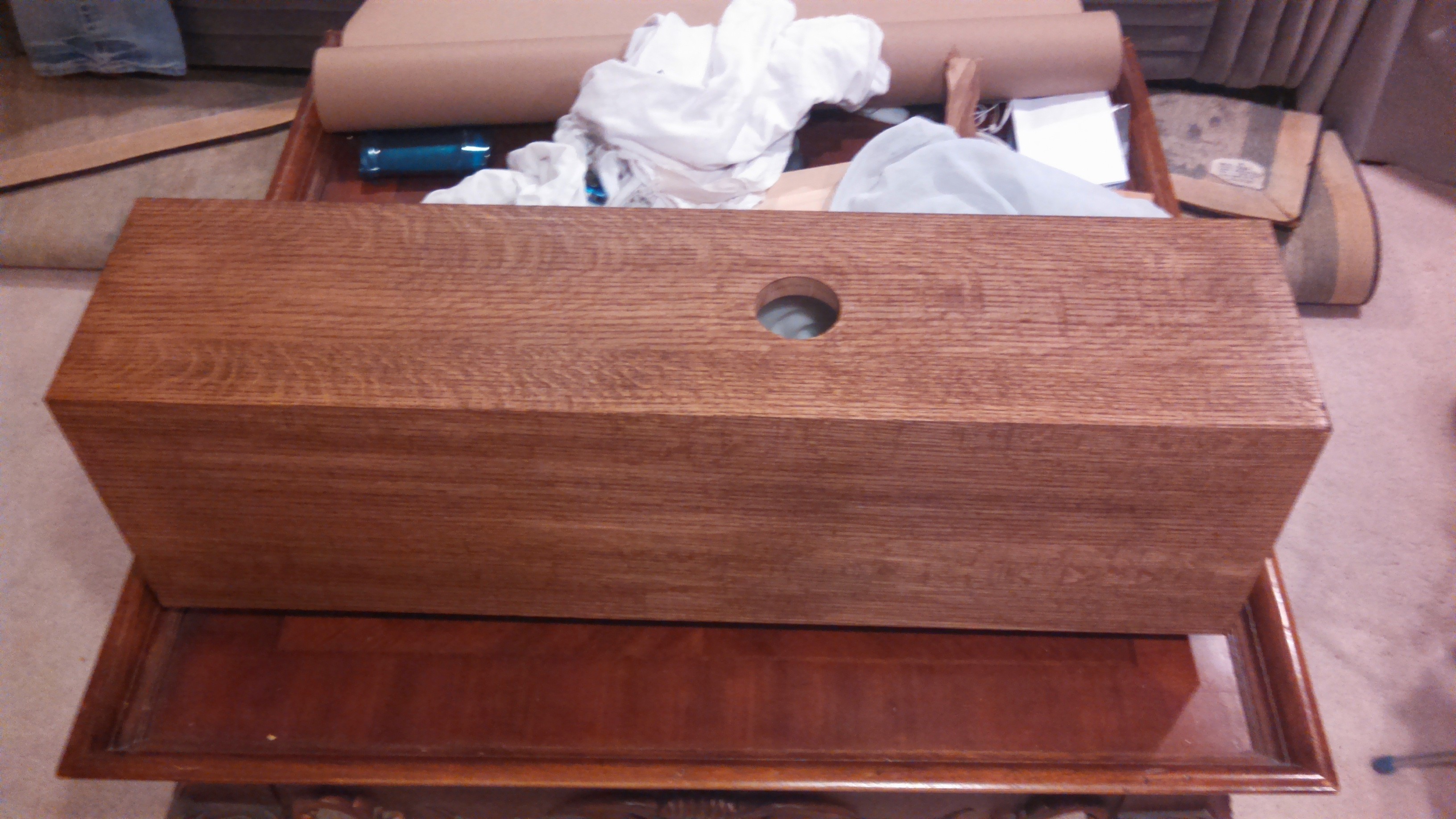 Decided if I was going to get my feet wet- I might as well do the best job I could. All the furniture in the house- save for a couple of things are all antique oak. Some mission era- some more primative- but nearly all oak. Thought a nice quartersawn oak would fit the bill so I ordered a sheet of Paperbacked slip match quartersawn with heavy flake. Was a bit nervous as I had never veneered anything but followed the instructions and took my time. Overall I was incredibly pleased with how it turned out.