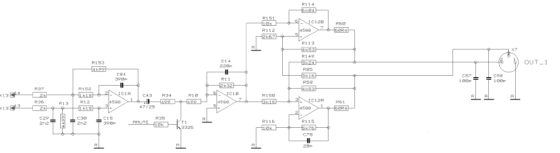 Just say no to the output circuits. The easy way for the output was to use 1:1 interstage transformers and directly drive them from the voltage output DAC's. I was already using 1:1 interstage transformers on the output of the Pioneer CD player to great effect so it only seemed natural to do the same thing with the Behringer.