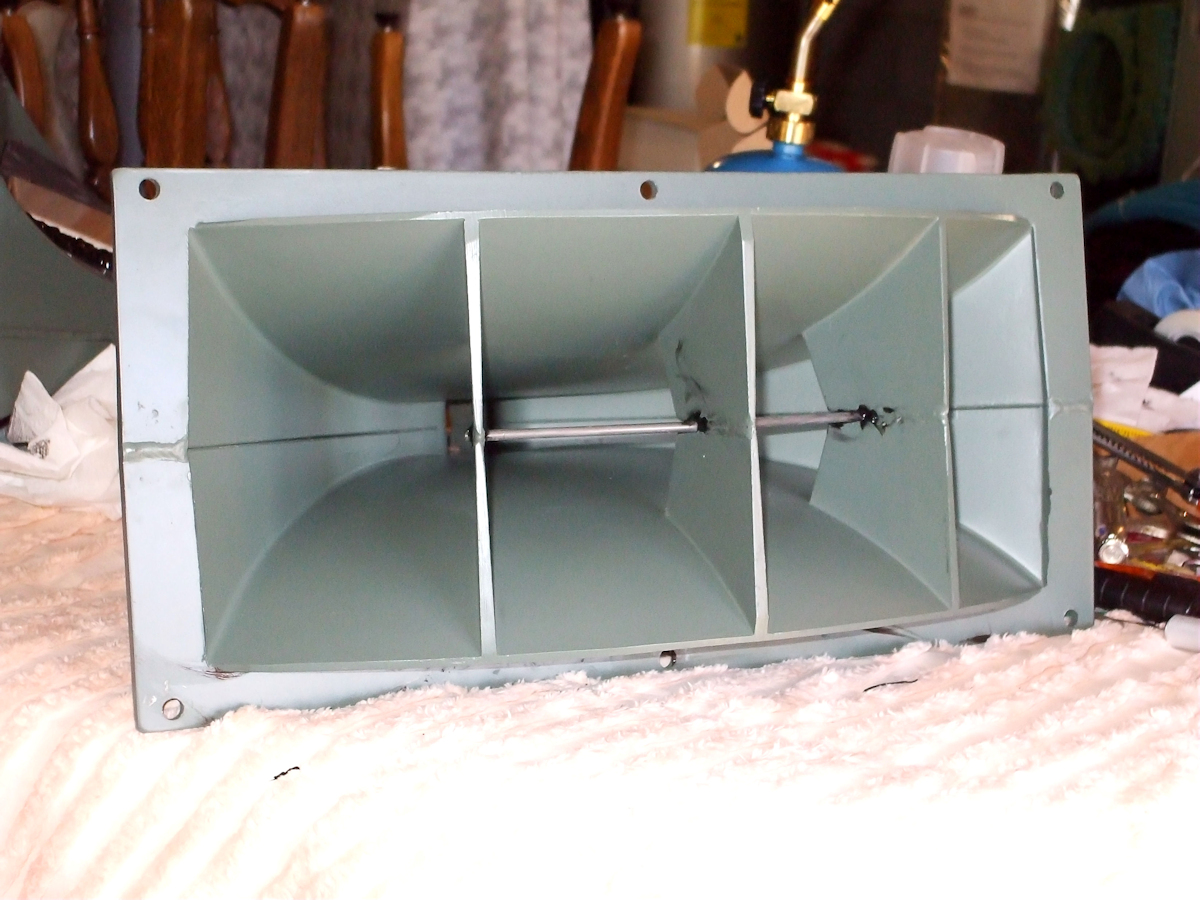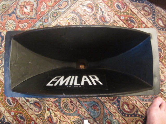 Now here is a good 500hz horn, the Emilar EH -500. Designed by Jonas Renkus after he left Altec and intended as a bolt on retrofit/upgrade for the 511. It is a heavy casting. Very smooth throat that gradually opens...in fact without the 1" adapter, there is no throat extension on the horn for a 2" driver. You can see the diaphragm, as it were, from any point inside the coverage angle of the horn.