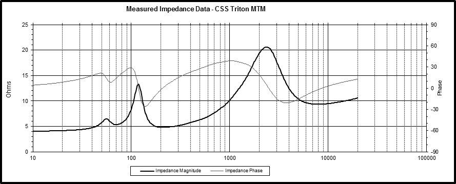Triton's have a lowish impedance, due to the parallel woofers... see attachment.