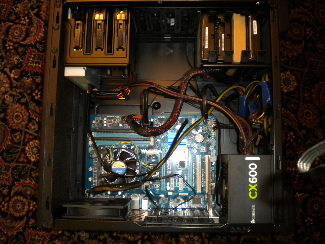 The system build uses the motherboard I sent you a link to, intel i3 cpu, 8 Gbytes of memory, 1 Tbyte hard drive, dvd drive, intel on cpu graphics, and a tower case. That is all I remember until I get the machine back from my friends house.