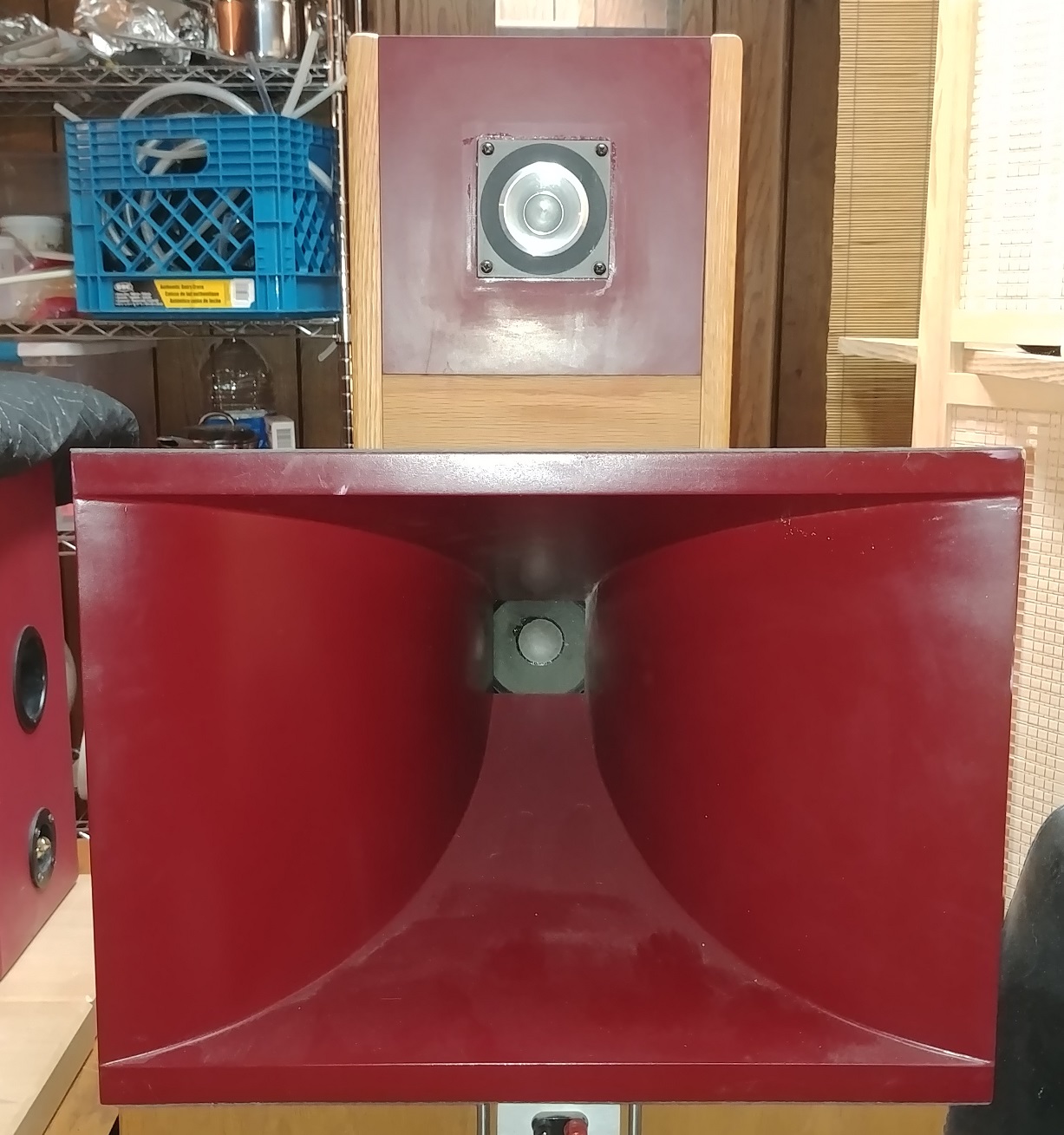 The horns are Tractrix Edgar-style midrange horns, approx. 250 Hz.