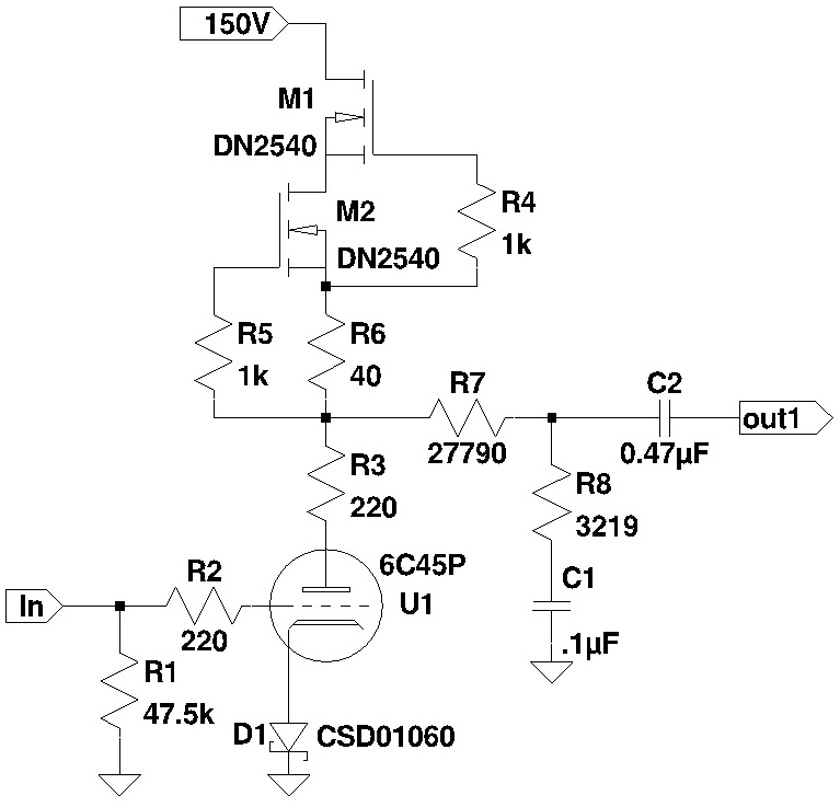 http://www.tubecad.com/2007/04/blog0102.htm.) The compliant CCS looks like an AC CCS to the triode, and sets the cathode-follower DC output to zero volts. The circuit is shown in Figure 6.