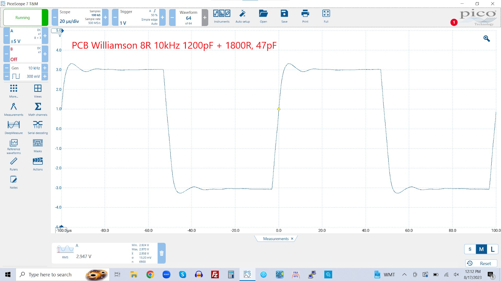 I finally built a pair of monoblocks with the PCBs and the results exceeeded my expectations. With some feedback tuning advice from an eminent Williamson expert at Audiokarma, I was able to achieve consistent results regardless of the output tap. The top plate is Delrin and the choke and power tranny are salvaged from old Heathkit amps. The stability is superb, and the amps sound just wonderful--very sparky and solid. I've posted the 10K square wave results below.