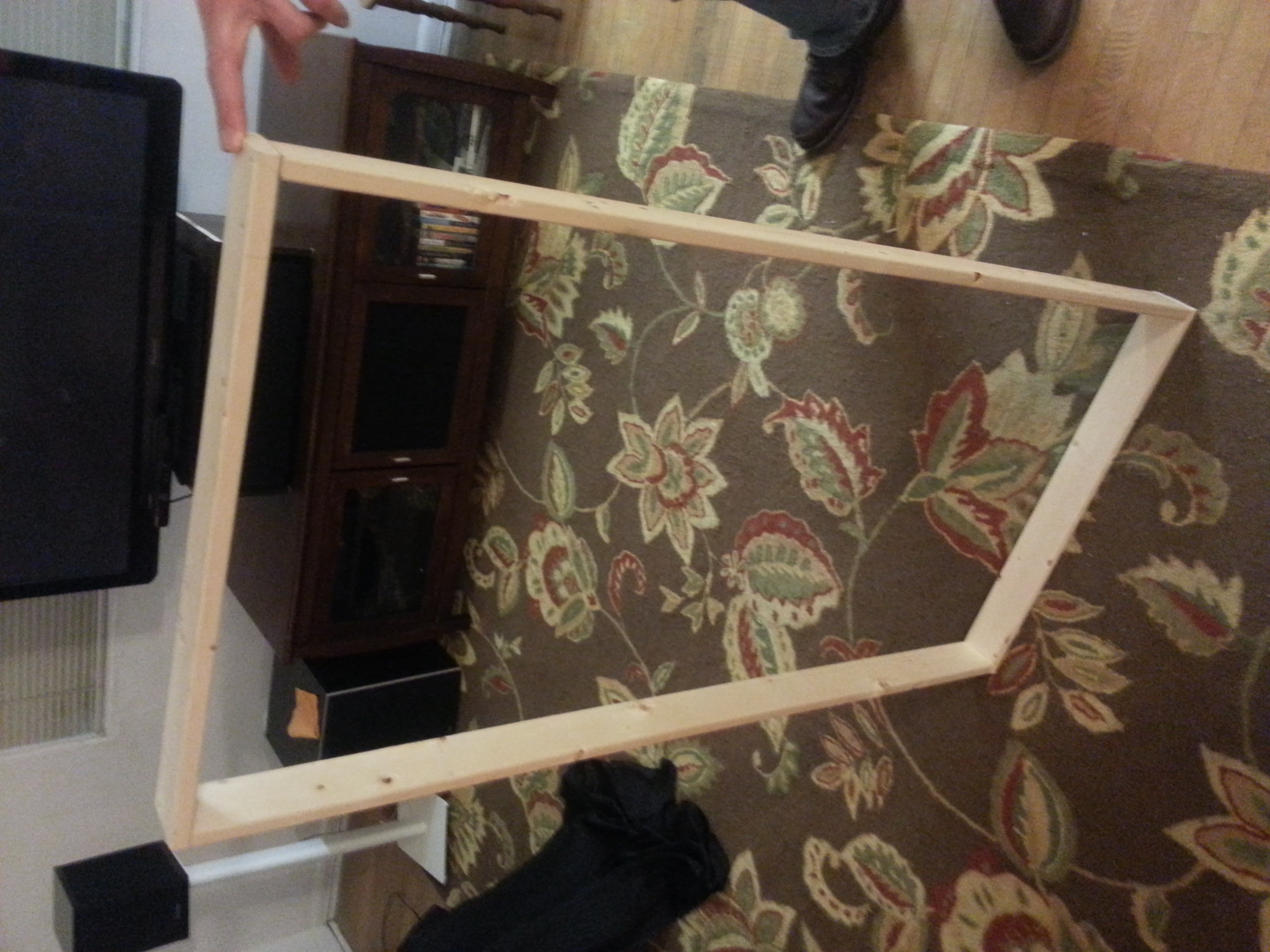 With the frame built, attach fabric to the back using staples. Trim the excess after stapling.