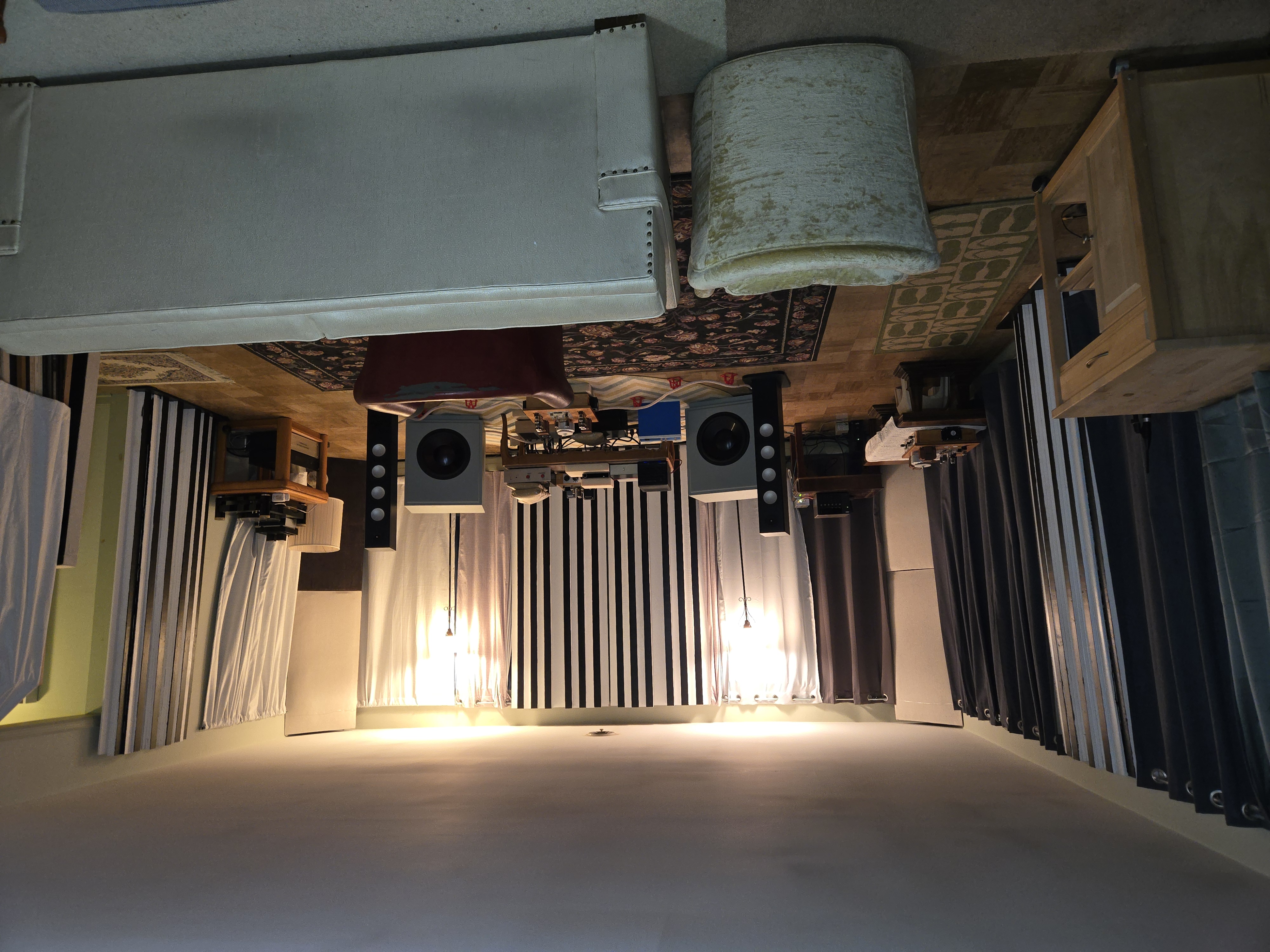 With only the treatments pictured above the sound is (to my ears) substantially improved. Bass is much less boomy, better defined and more abundant. The room "sounds" bigger and "smoother".