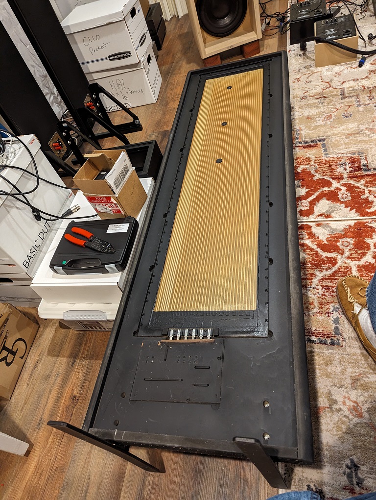 This is going to be a fun project and will share what happens. The Magnepan quasi-ribbon repair kit and new black socks are coming, so the repair should look good with the new connector plates. Will integrate them with the 3x12" servo subs in my room.
