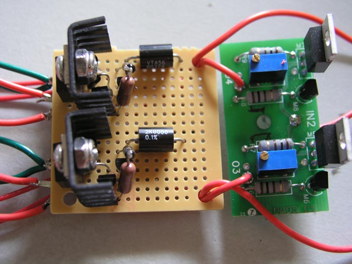 http://www.pimmlabs.com/web/Active_load ... ntrol.htmlSome experimenters have experienced high-frequency oscillation in CCSs because of pickup of external radio frequencies (RF). Oscillation can be controlled by adding a small-valued resistor (R2-R9) in series with the gate of each MOSFET to filter the RF. Some experimenters jumper the gate-stopper resistors (R2-R9) and have no oscillations; those who experience oscillation use the smallest resistor they can to stop the oscillations – some use just 100 Ohms instead of the specified 1000 Ohms. The choice is up to the builder.