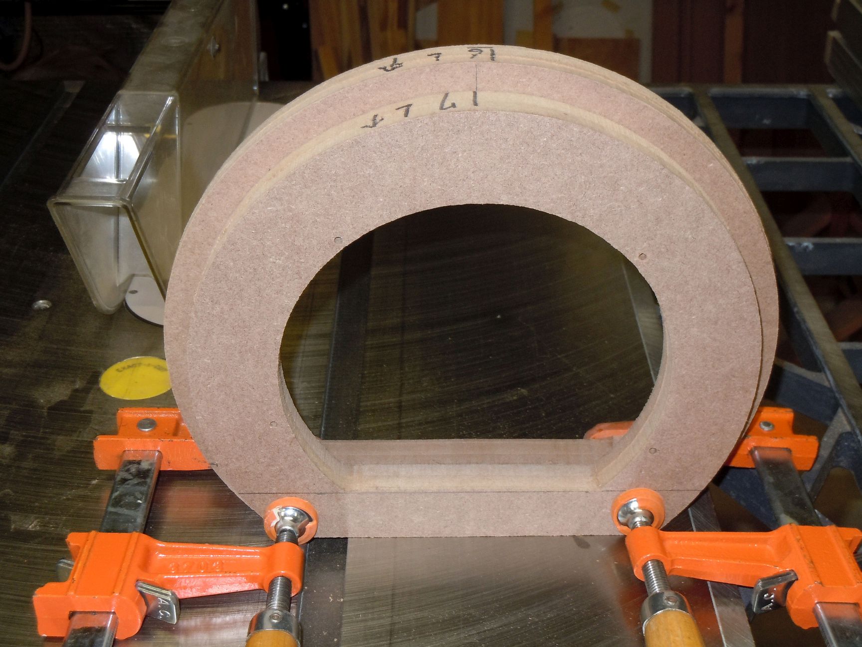 I'm going to run threaded rods all the way through the fourteen holes, and I think I'm going to try to not glue the layers together. Nut's on the outside will hold everything together.