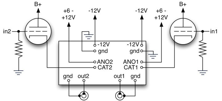 Thanks. I intend to add LED bias to mine, cathode resistor bias w/bypass was expedient. The bias voltage is 12.2V, so need two parallel strings of 7 red LEDs each to handle the current for each tube. Need to cut up a perfboard to wire them up. I want to use 3mm LEDs since that is the most compact, the 5mm LEDs do not quite fit 0.1" spacing in a string.