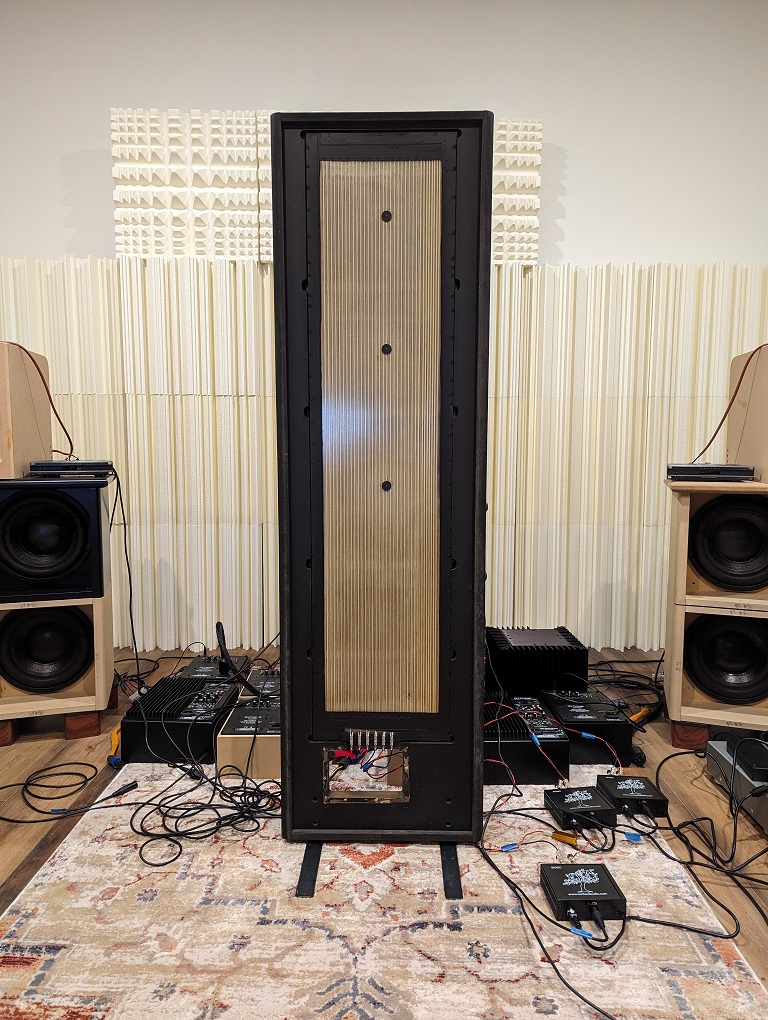 The Magnepan 1.7 with the dspNexus 2x8 DSP crossover is now running. This is the one speaker with all three planars working for measurements.
