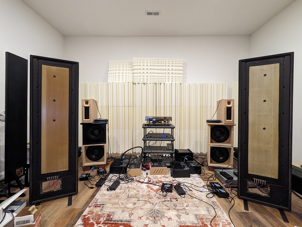 Since one super tweeter foil element is open circuit, did the DSP crossover to run as we 3-way adding the servo subs. The tweeter run 400Hz to 20KHz. Also added time alignment for the 3 planars and main panels to subs to finish it up.