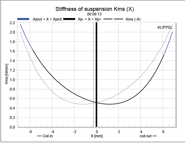 That is only true if the motor strength at large excursions is symmetrical. I have seen many drivers that for several reasons have a BL curve that is not symmetrical around center. At some point no matter how much power the servo forces into the voice coil there is not enough motor strength to control the nonlinearities. That point will vary in the in and out directions if the BL is not symmetrical. What is worse, the non symmetry of the suspension compliance (Kms) often is worse in the same direction that the BL is weakest making the job of the servo even that much harder. I'm including two graphs of a good driver that illustrates the case where the BL decreases faster in the same direction that the suspension stiffens faster.