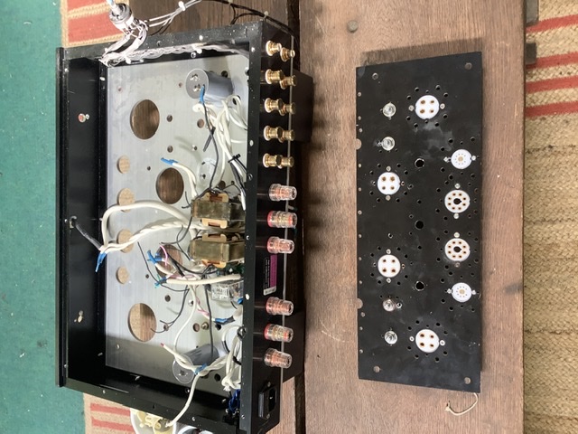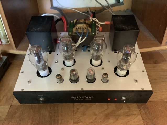 So a few years ago my friend Jim bought a used Sofia Electric PP EL34 amp, only to learn after receiving it that the previous owner had "modified" it for 6L6's. Whatever he did, the thing never worked and kept blowing tubes and fuses. Jim took it over to Richard at Sofia to see if he could "fix" it, but Richard said it was such a mess he couldn't do anything. It sat in a closet for a few years, then when Jim and his partner retired and moved to Lewis, he sent it to me to see if I could do anything with it.