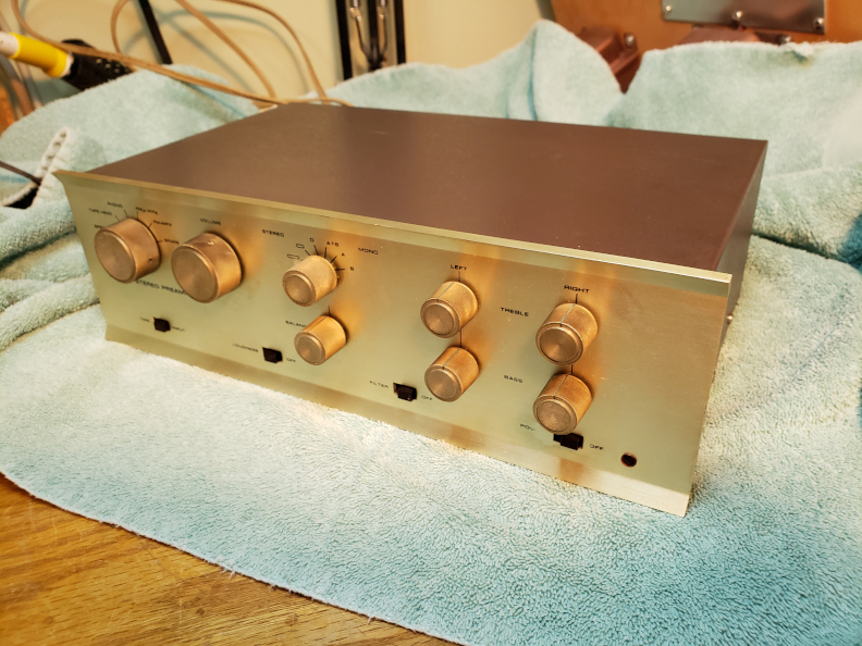 The SCA80Q was a bit more of a challenge. Went Dyna went out of business, my dad, brother and I went to the Circuit City warehouse sale of all that remained of their stock. None of us had a lot of money to spend. There were a pair of MKVI amps I was drooling over. Dad bought the SCA80Q and an AF-6. These sat atop his Capehart console driving A-25 speakers from the 70s until they moved out of the house in 2000. They played EVERY day.Sometime after moving, the amp died. When dad passed away in 2009, I inherited them. The amp no longer worked, but the tuner survived.