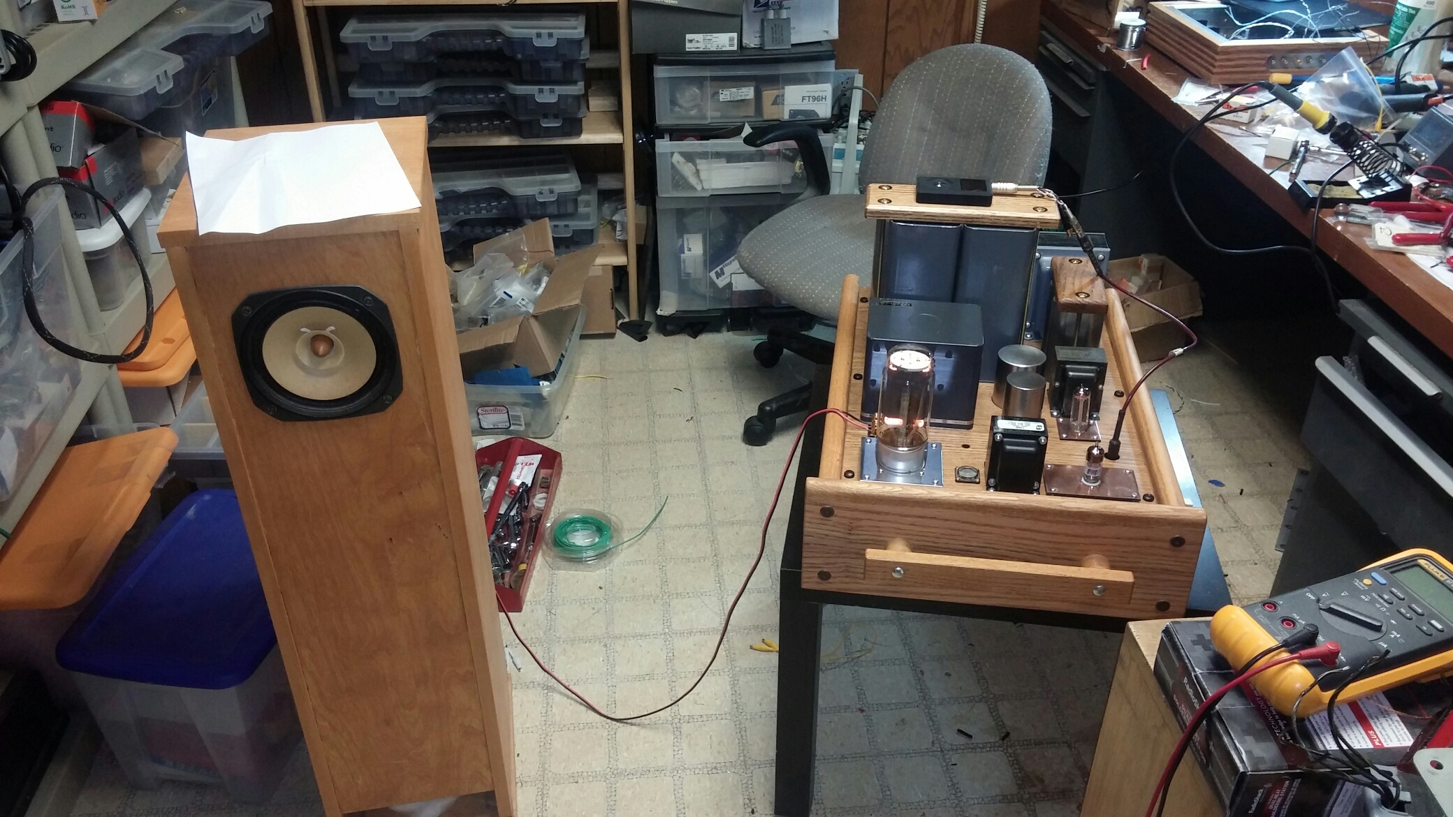 Based on initial informal listening in mono, the amp is dead quite background, and is very nice tonally. I am not using very good speakers while it is down in my shop, though the best sound so far is with a classic Dynaco A25, which I probably keep set up to amuse me while building the twin brother.