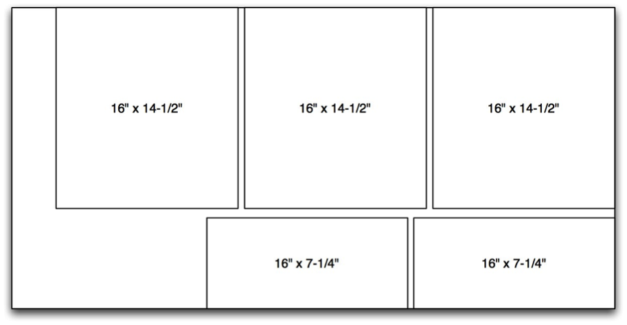 I chose birch-veneer plywood because it was available, had more plies and less voids than regular plywood, and provided a finished surface when assembled. Voids could cause resonant cavities in the plinth, and should be avoided (so to speak). By using a 2’ x 4’ sheet of plywood, I could get all my pieces with at least one manufactured edge to allow square trimming later, as long as I didn’t mind joining two pieces to make the bottom layer. See Figure 4 for a cutting plan.