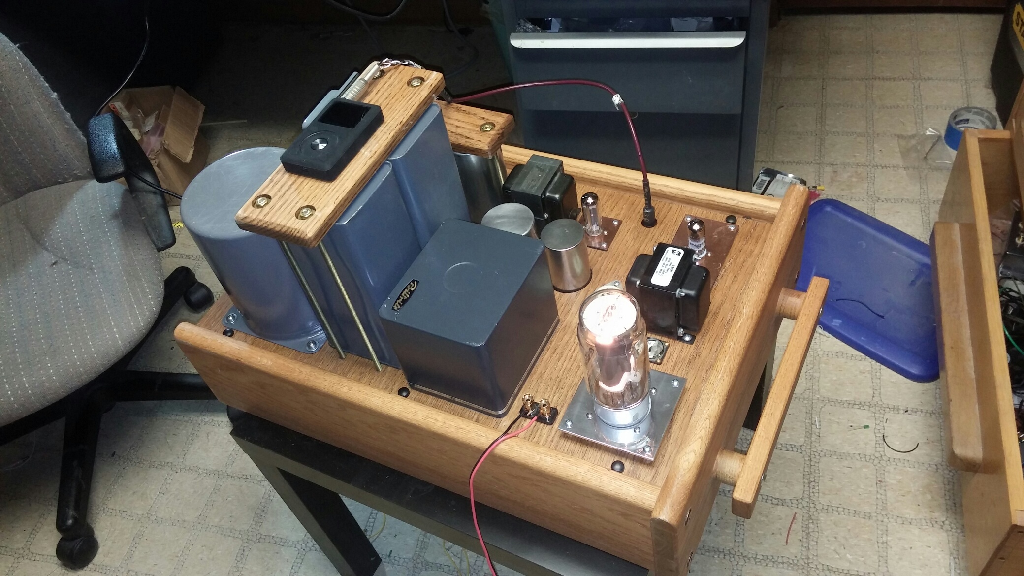 Based on initial informal listening in mono, the amp is dead quite background, and is very nice tonally. I am not using very good speakers while it is down in my shop, though the best sound so far is with a classic Dynaco A25, which I probably keep set up to amuse me while building the twin brother.