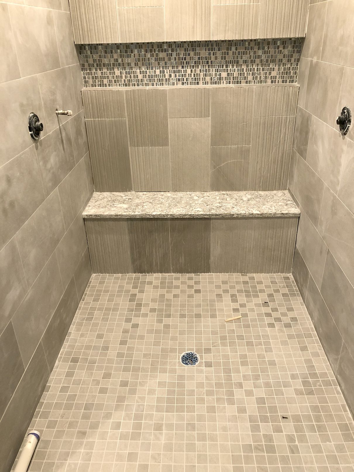 I saw that you had a rain shower head in your temporary bathroom. In our new house I wanted a regular shower head and Marie wanted a rain head. So we did both plus a hand shower. There will be no reason to be dirty any more. Here is a photo while the shower is still under construction. The heads had not yet been installed. Best of luck in the new place. Please send photos and the address so I can see it on the map.