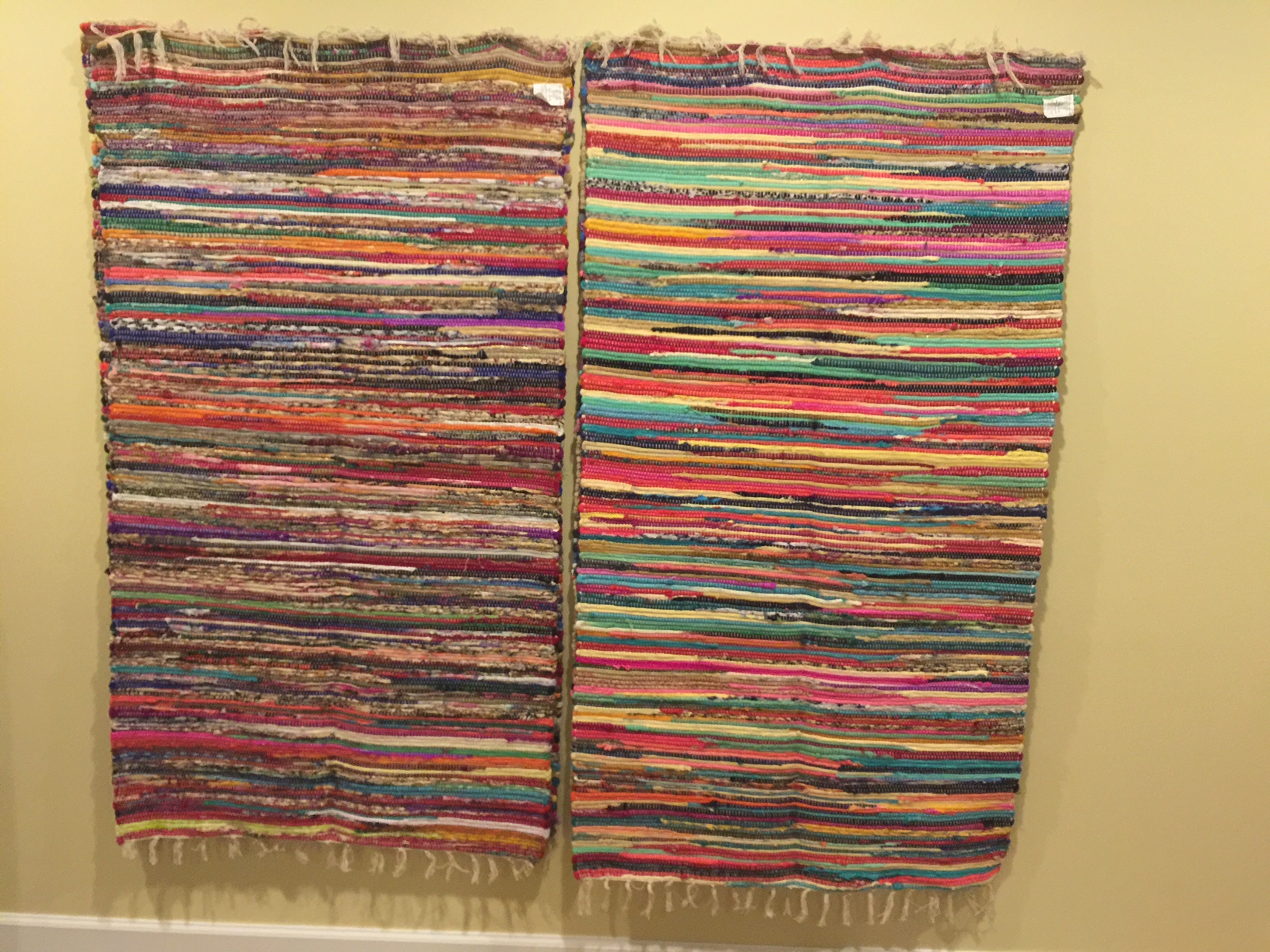 Found 3'x6' rolled fabric mats at FiveBelow for $5 each. The mat is about 3/16" thick. Hung two of them at the early reflection areas. They are not bad for $40 for both walls.