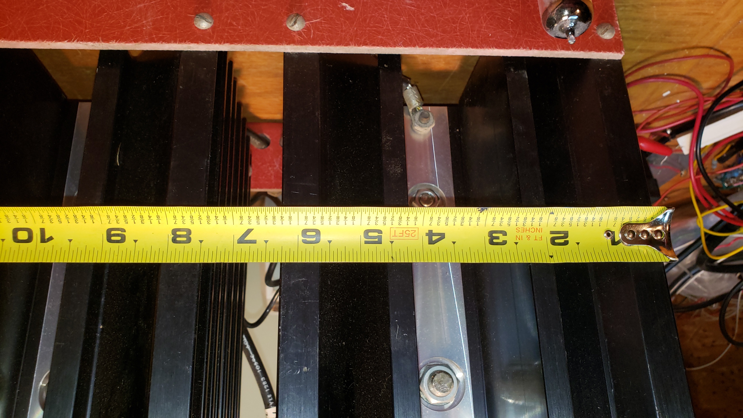 The heatsinks are a bit larger than I thought. The BACO boards are 10" long, but the distance between the outside edges of the two outer MOSFETS is 8-1/2". So the heatsinks are just barely long enough for the devices. What I recommend is get a couple of feet of some 1/4" thick aluminum angle, maybe 2" x 3", but the long leg being enough to clear the heatsink. Then rip cut/machine the shorter leg of the L so that it fits inside to the center web of the heatsink. Using the existing holes, drill and bolt the angle to heatsink, using thermal compound. It will probably help to smooth and flatten the surface in contact with the heatsink (via sanding through grades against a flat surface like a table saw bed or surface plate. Of course, drill out the holes for the MOSFETs prior to mounting. Once you have the output stage up and running, and starting with a low bias, increase the bias over time until the MOSFETs are around 50 to 55C. Use a temperature probe on your multimeter (if you have this feature). Once that is set, you are safe. I think it will likely work just fine, though it will be ugly. Just put a cage around it.