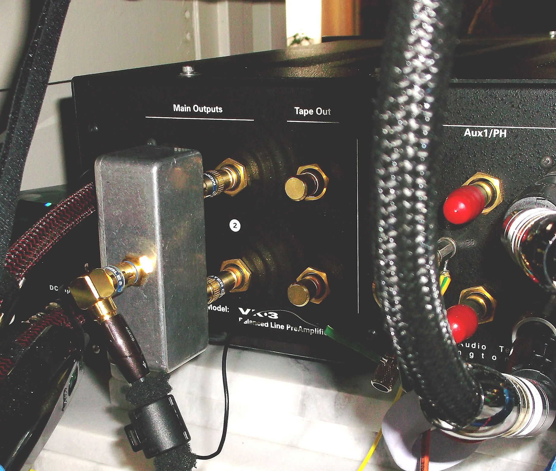 The interconnect run is 8-meters to the corner loaded sub-woofer's integral amplifier. Cross-over is about 40-Hz.