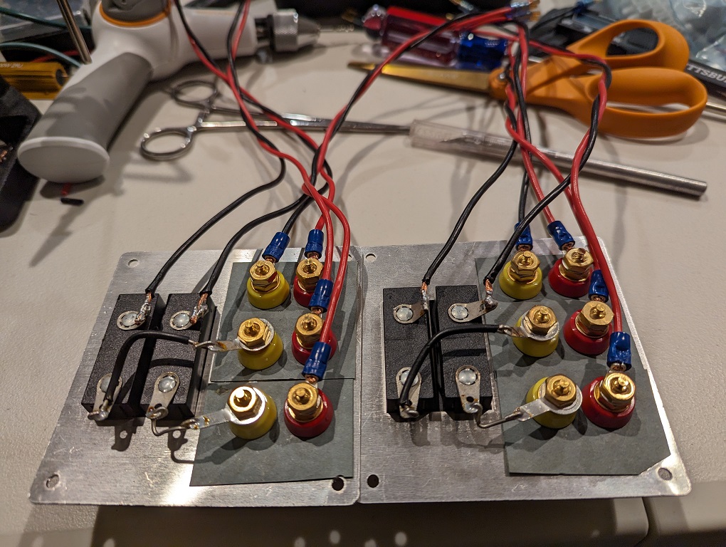 New connector plates wired for 3-way use for the Magnepan 1.7 speakers.