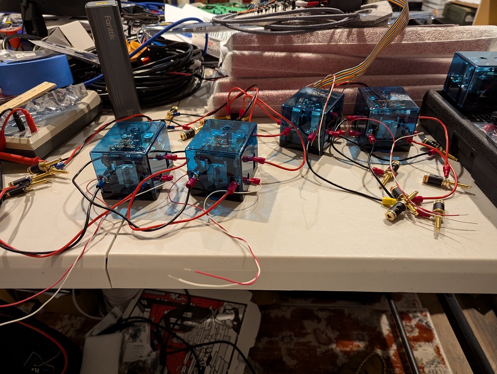 Building the ABC Switch relay wiring and testing the drive circuit. Using 8-DPDT replays with silver contacts for the speaker level switching between the crossovers.