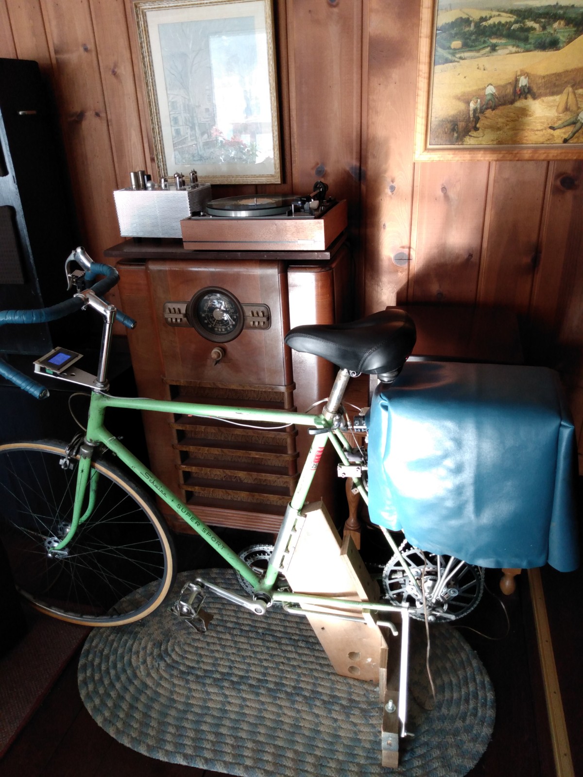[quote="dberning"]Some of those in the DIY group already know about me having made an indoor bicycle trainer that generates the electricity needed to run an audio system. I have recently changed the system from CD based to LP. And with this I needed a new amplifier with phono. So I thought I would share this amusement with the rest of the group. First and foremost to anyone who thinks they are paying too much for power, they should try to generate their own power. Believe me, for the amount of power you get for pennies you will have to work really hard if you had to generate that with your own body. I summarize the components that I have made with a series of pictures. To run this system I need to supply an average of 60 watts going into the inverter. There are additional losses not counted here in the generator and mechanical chain linkages that my legs need to generate. I would estimate these additional losses at around 20% of the power delivered.